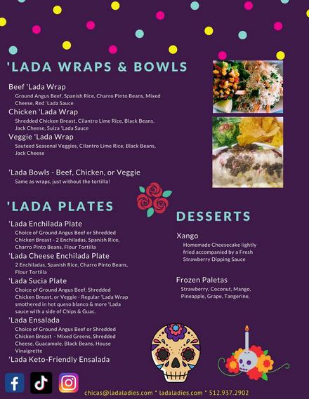 Our Food Truck specializes in ENCHILADAS! Yes, you read that right! We range from the traditional Enchilada Plate to serving it Burrito-style and can even Queso-fy it! Here are a few examples of what you can find on our daily menu!